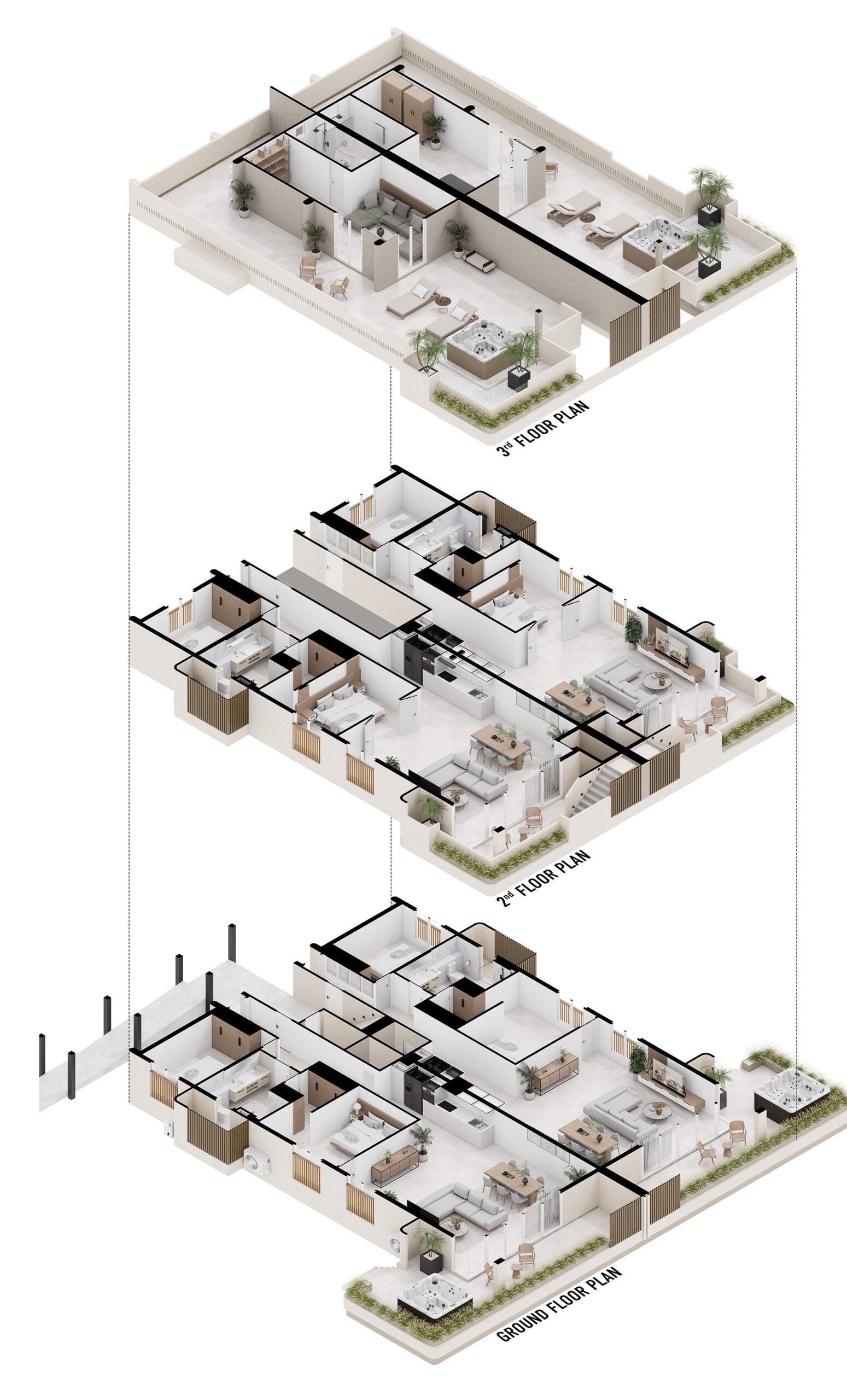 At Palmora Apartments, we’ve made the deliberate decision to keep the number of units low, ensuring that each resident enjoys a sense of privacy and tranquility. Only one building will be constructed, with just four apartments. This results in a total of 2 Garden-Level Apartments and 2 Sky Terrace Apartments.